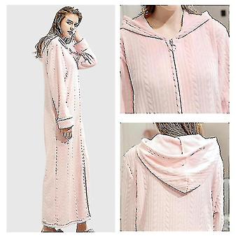 Damhuva morgonrock Badrock Varm mjuk dam fleece dragkedja upp långa kläder O
