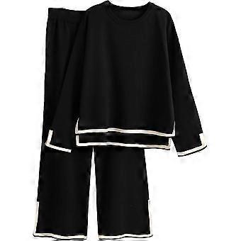 Damkläder med två delar Långärmad stickad tröja Topp Vida byxor Loungeset Träningsoveraller