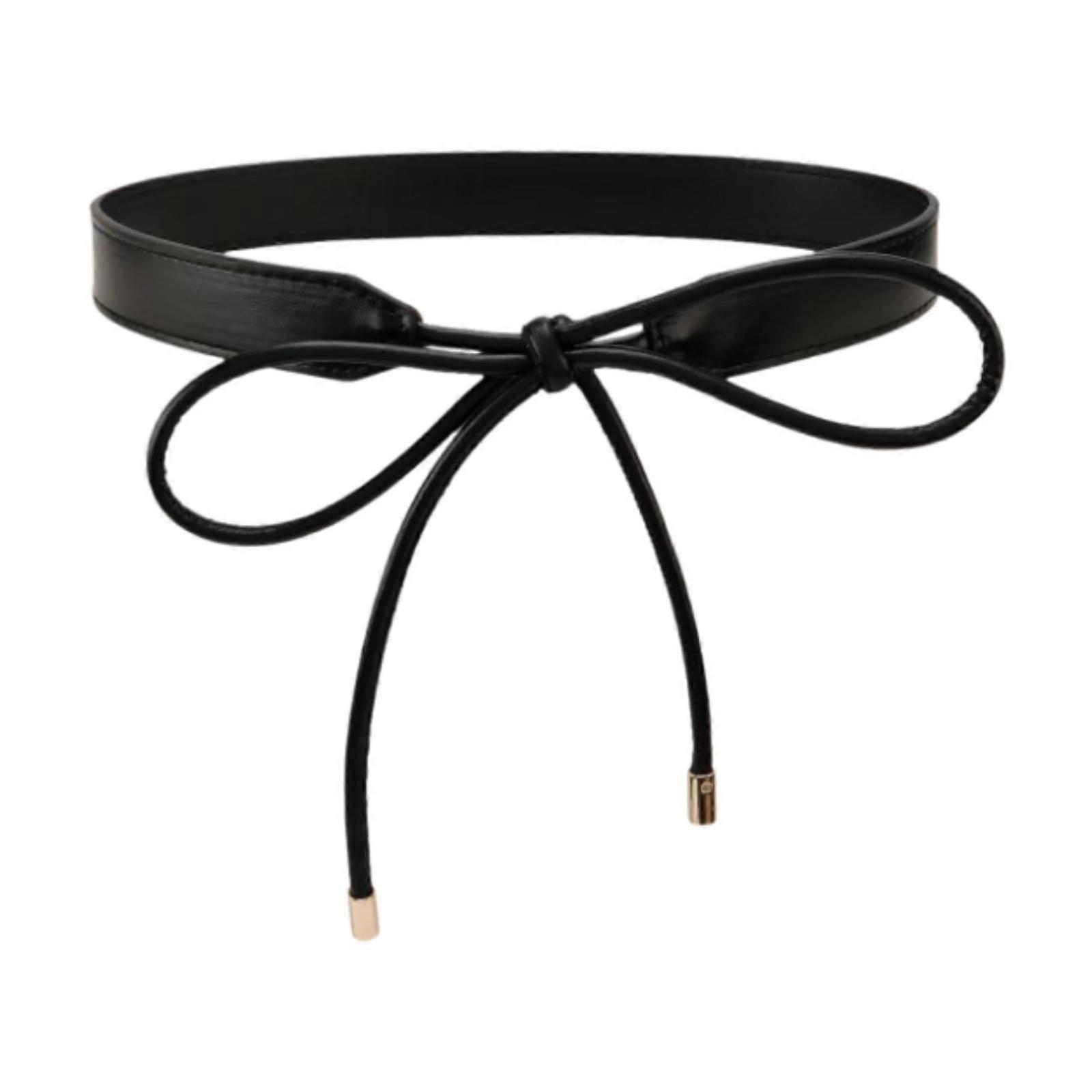 Women's Leather Waist Belt Knotted Ladies Waistband for Blouse Clothes Jeans Black