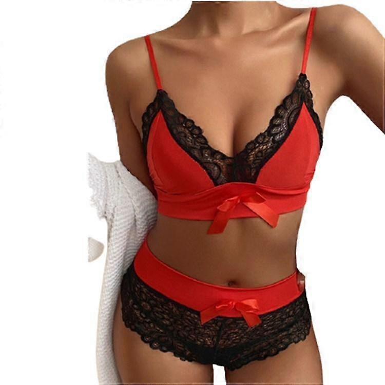 Women's Fashion Lace Sexy Pajamas Set Deep V-Neck Bowknot Spaghetti Strap Lingerie Set Sleepwear Cami Shorts Set