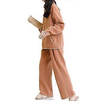 Dampyjamas i fleece, mjukt pyjamasset, vinter, varmt loungekläder, 2 delar, långärmat, nattlinne, presenter, röd, aprikosfärgad, XL
