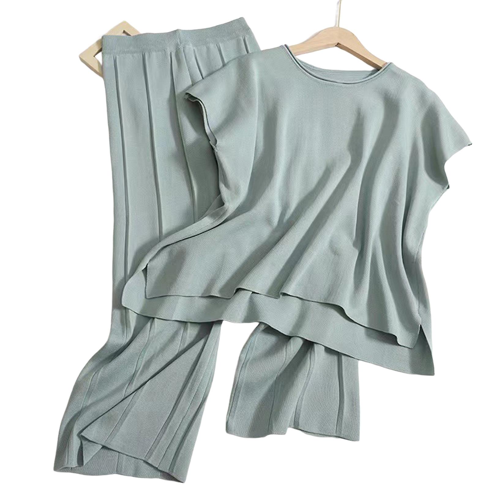 Womens Knit Pullover Tops & Pants Loose Set Comfortable To Wear Knit Outfits For Summer Holiday Outdoor Wear