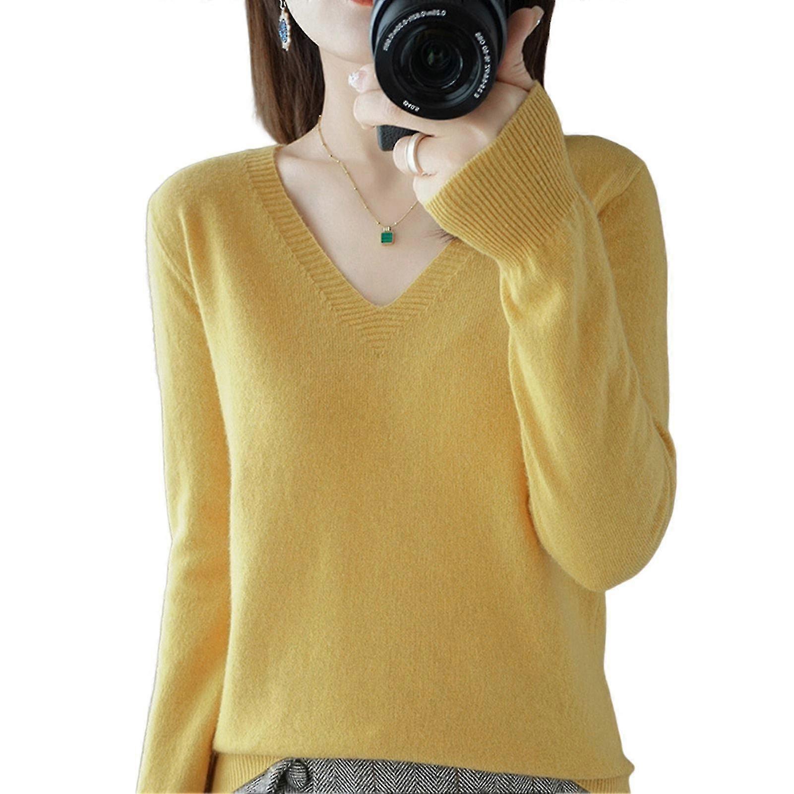 Damtröjor Långärmade stickade toppar med v-ringning