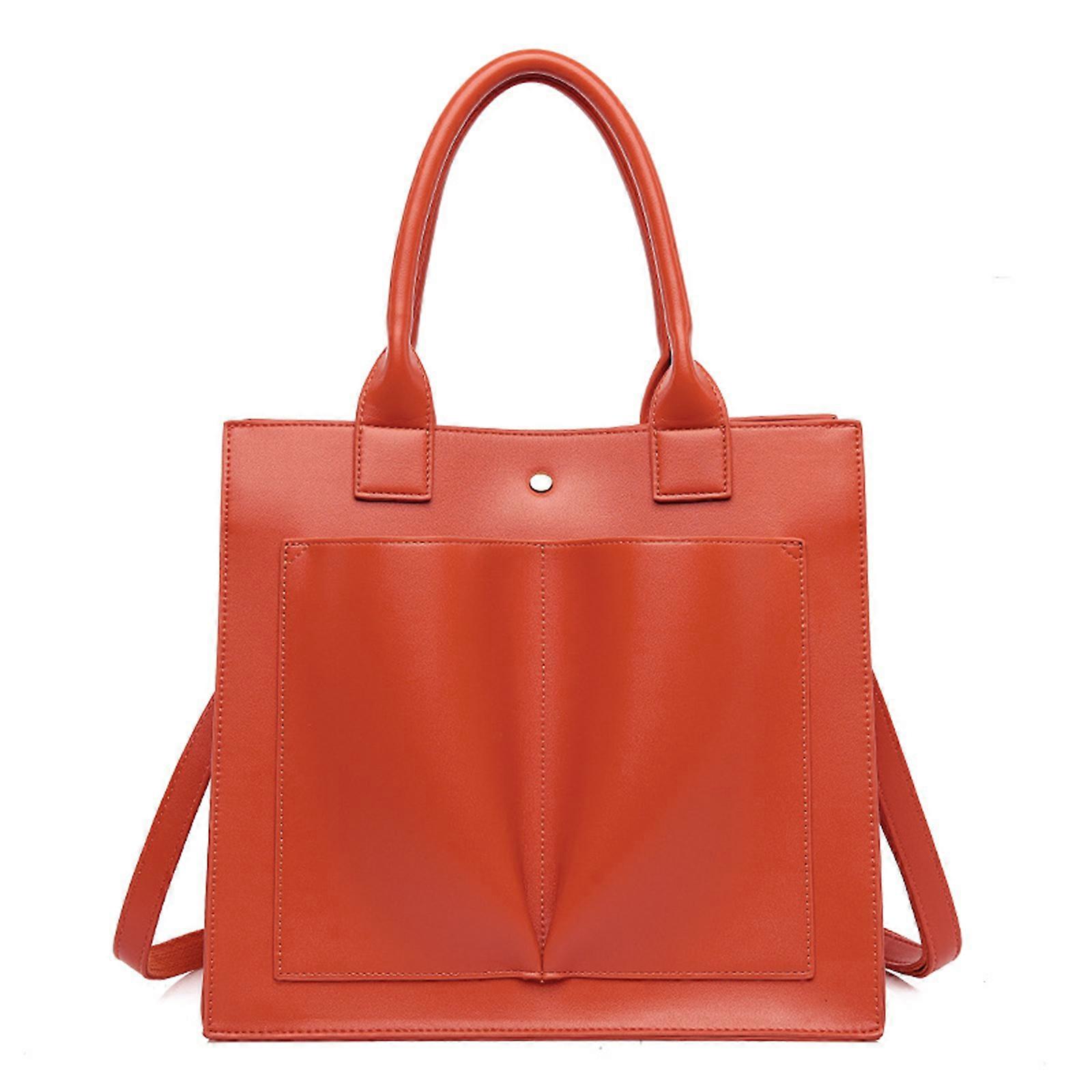 Women's PU Leather Laptop Bag Simple Handbags Fashion Shoulder Bags Large Capacity Crossbody Bags All-matching Tote Bag orange