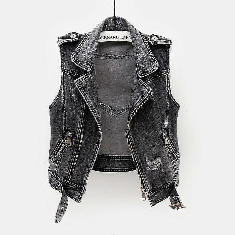 Denim Vest Women's Fashion All-match Ripped Motorcycle Jacket Sleeveless Autumn Jacket