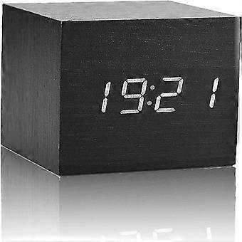 Digital Alarm Clock, Wooden Electronic LED Time Display Battery Operated Desk Small Clock with Indoor Temperature 3 Alarm Settings Adjustable Alarm V