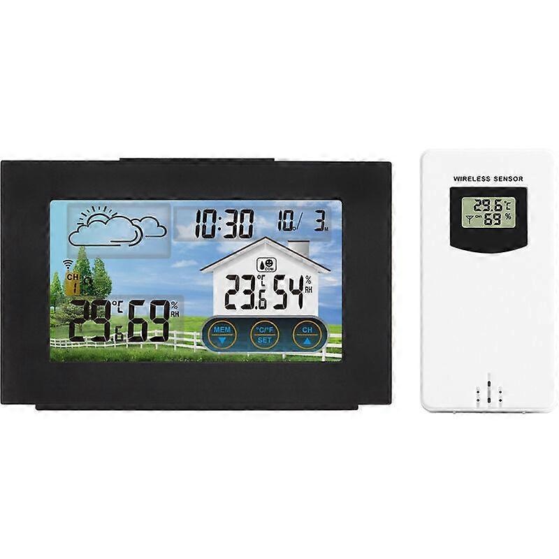 Digital Weather Station with Outdoor Sensor, Wireless Alarm Clock, Color LCD Display, USB Charging Port, Alarm Clock, Weather Forecast, Temperature, B