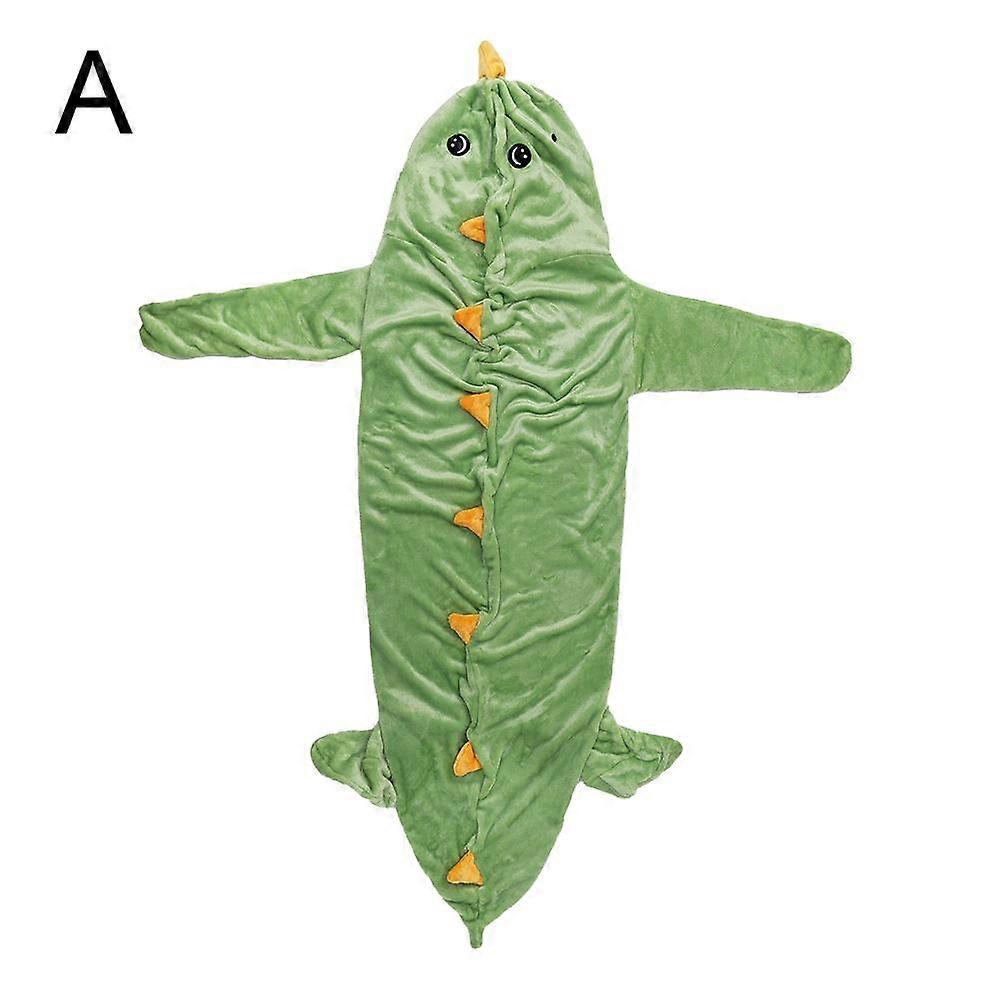 Dinosaur Sleeping Bag Wearable Blanket Double Sided Flannel Shark Design Warm Thick Loose Fit For Home Leisure Sleep Green