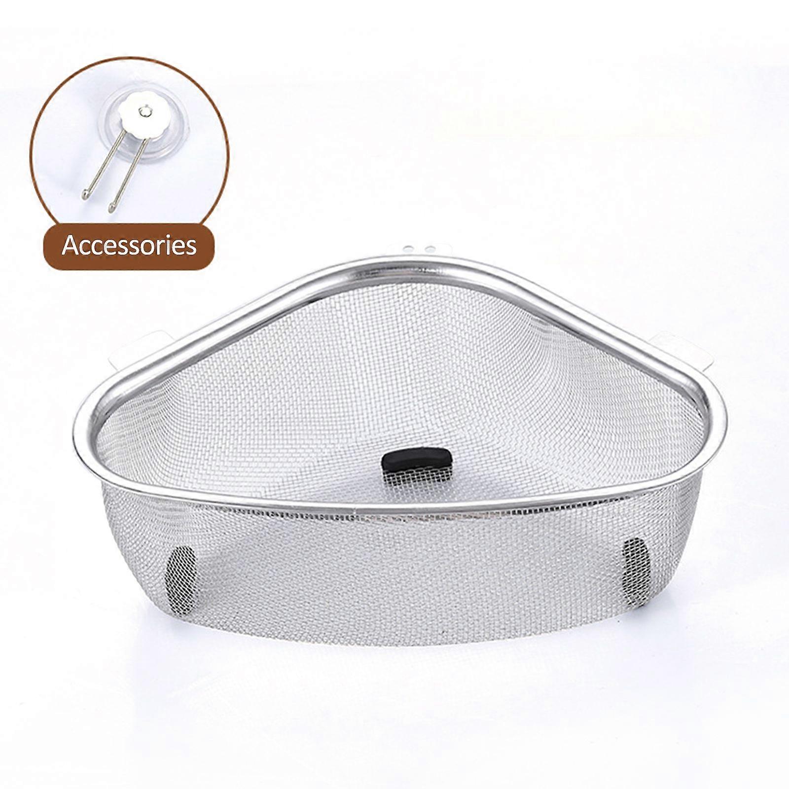 Sink Draining Basket Stainless Steel Fine Mesh Triangular Kitchen Sink Corner Strainer Basket for Kitchen Waste