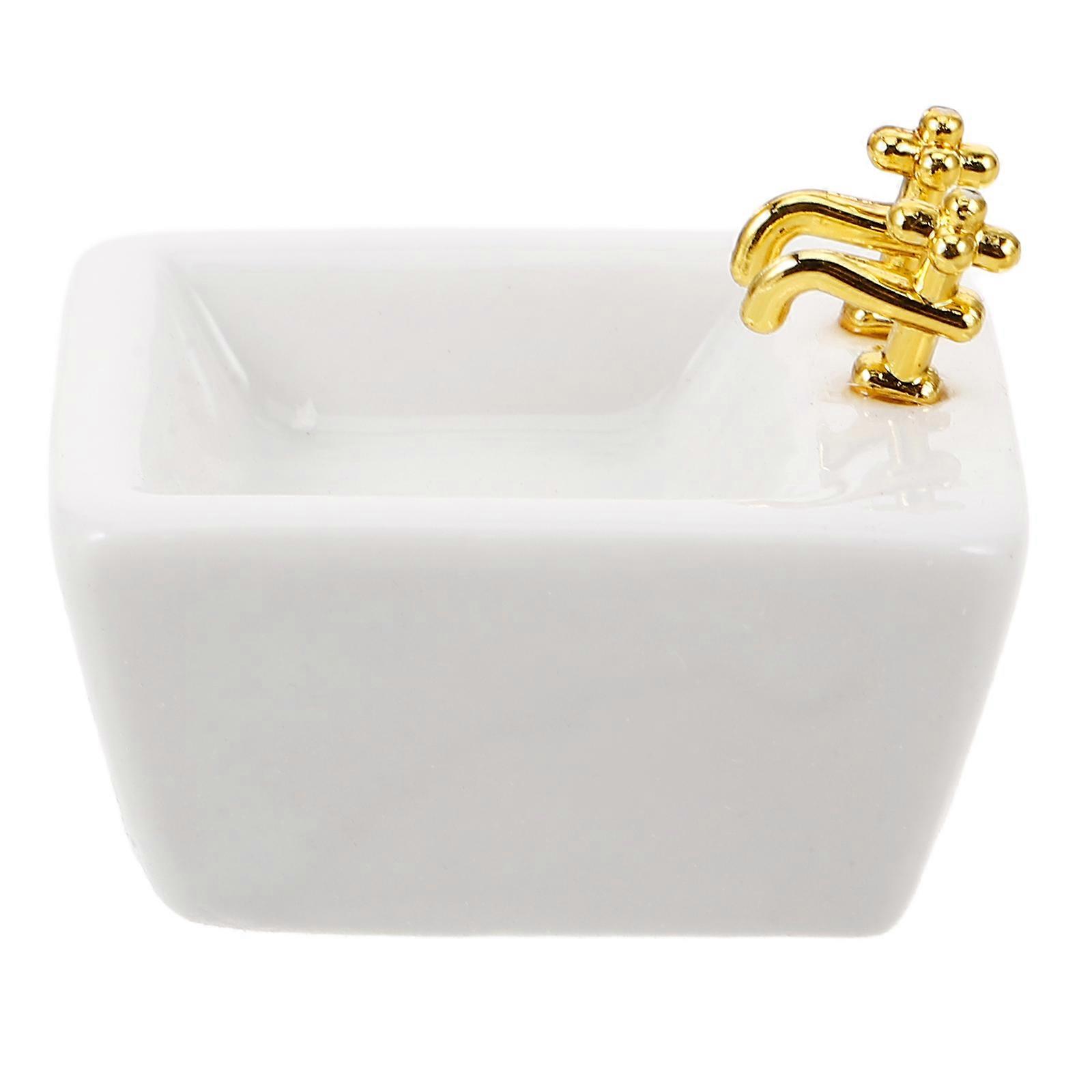 Dollhouse Bathroom Sink Round Ceramic Basin for Dollhouse Accessories 1 Piece