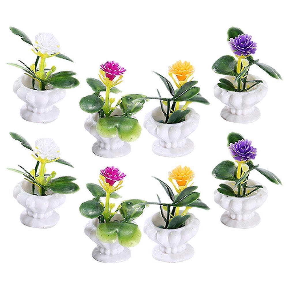Dollhouse Miniature Bonsai Plant Accessories for Decor with Resin Material Assorted Color 8pcs