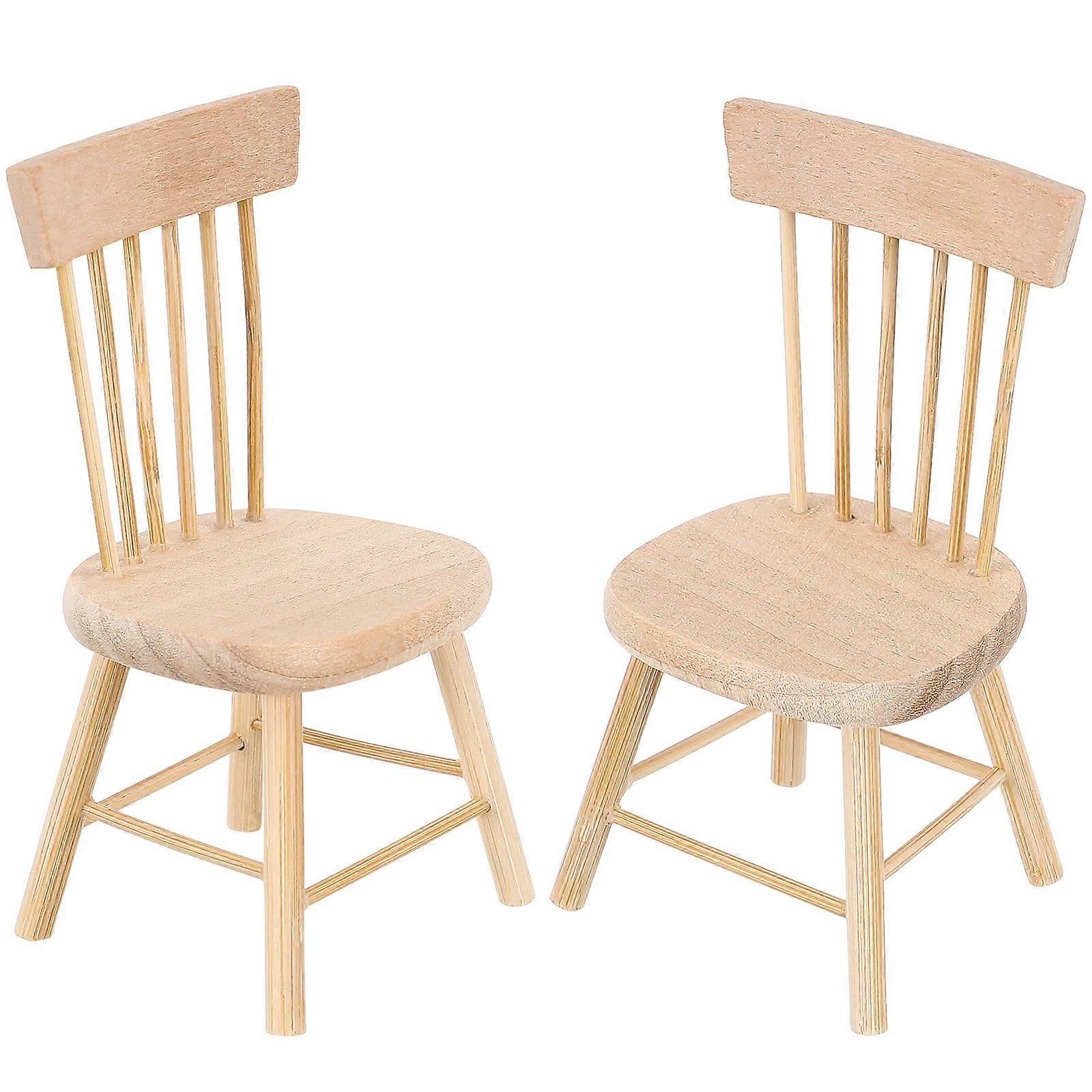 Doll House Chair Wooden Miniature Furniture for Home Decor 4Pcs