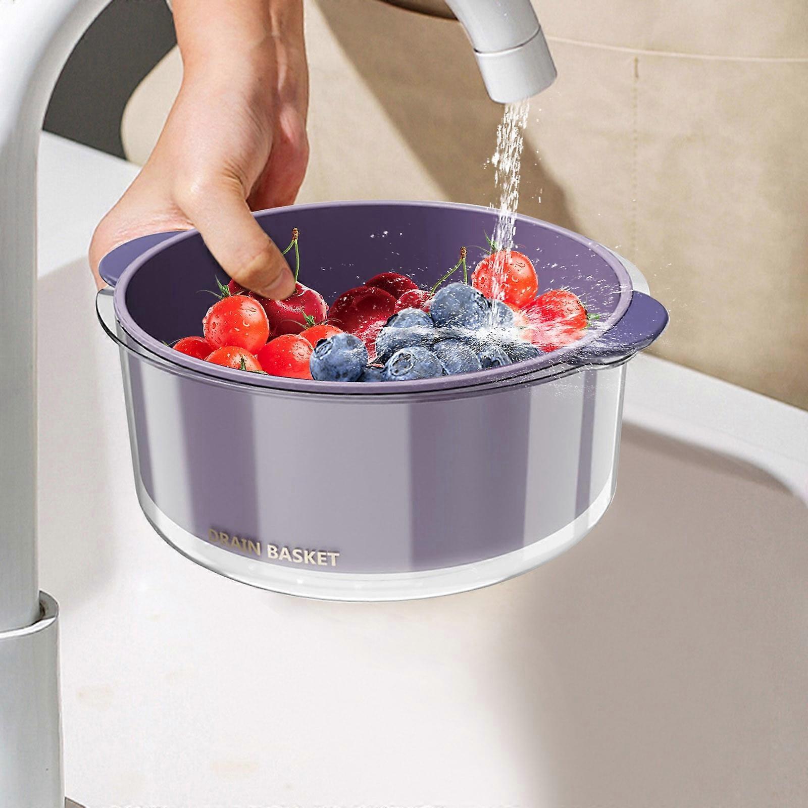 Double Layer Dish Drainer for Kitchen Sink - Thickened Plastic Drainage Basket, Vegetable Washing Basin, Leaking Basin for Home Use - Blue