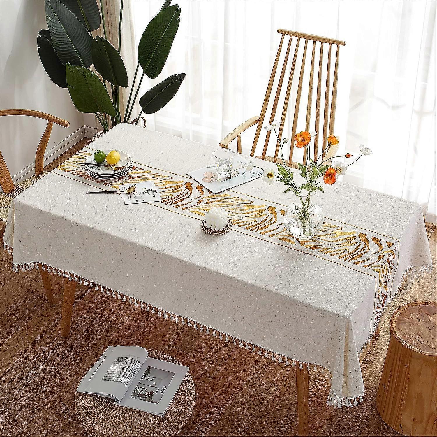 Tablecloth for Dining Table Rustic Table Cover, Cotton Linen Fabric Small Rectangle Table Cloths Coffee Leaf, 55x86 Inch
