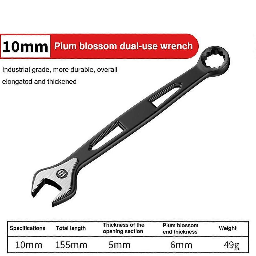 Durability High Carbon Steel Dual-use Spanner Thick Hollow Out Plum Blossom Wrench Extended Open-end Wrench For 6-15mm Screws