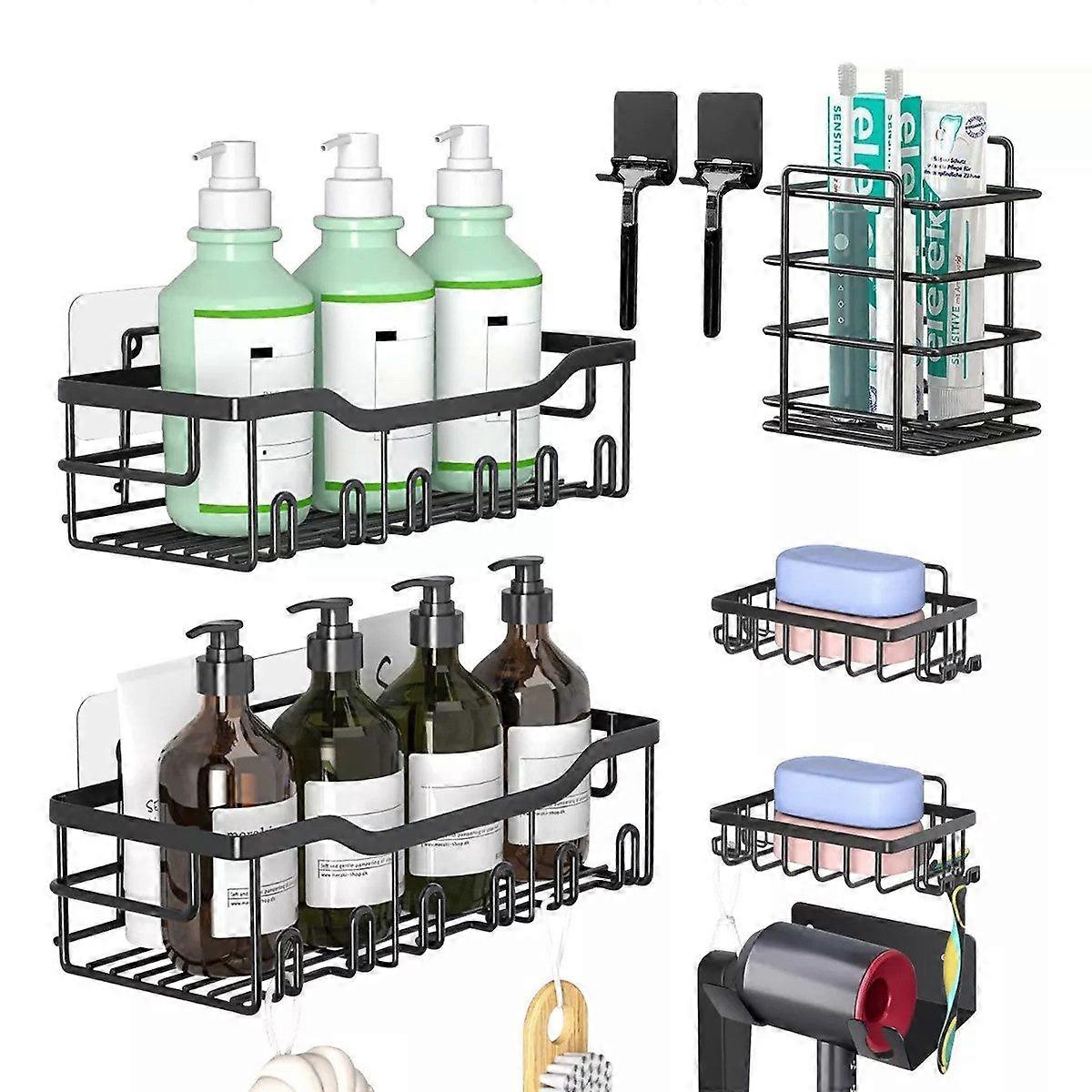 Shower basket Shower tray without drilling, black shower basket set of 8 pieces for modern bathrooms