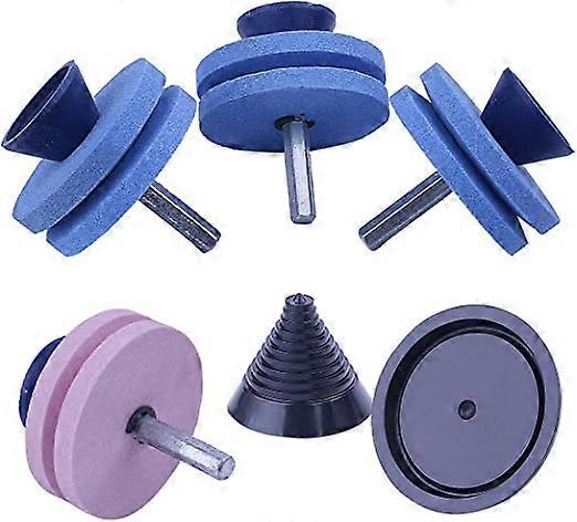 DWW-4 Piece Double Layer Sharpening Stone Lawn Mower Blade Sharpener for Drill with Blade Balancer for Hand Drill