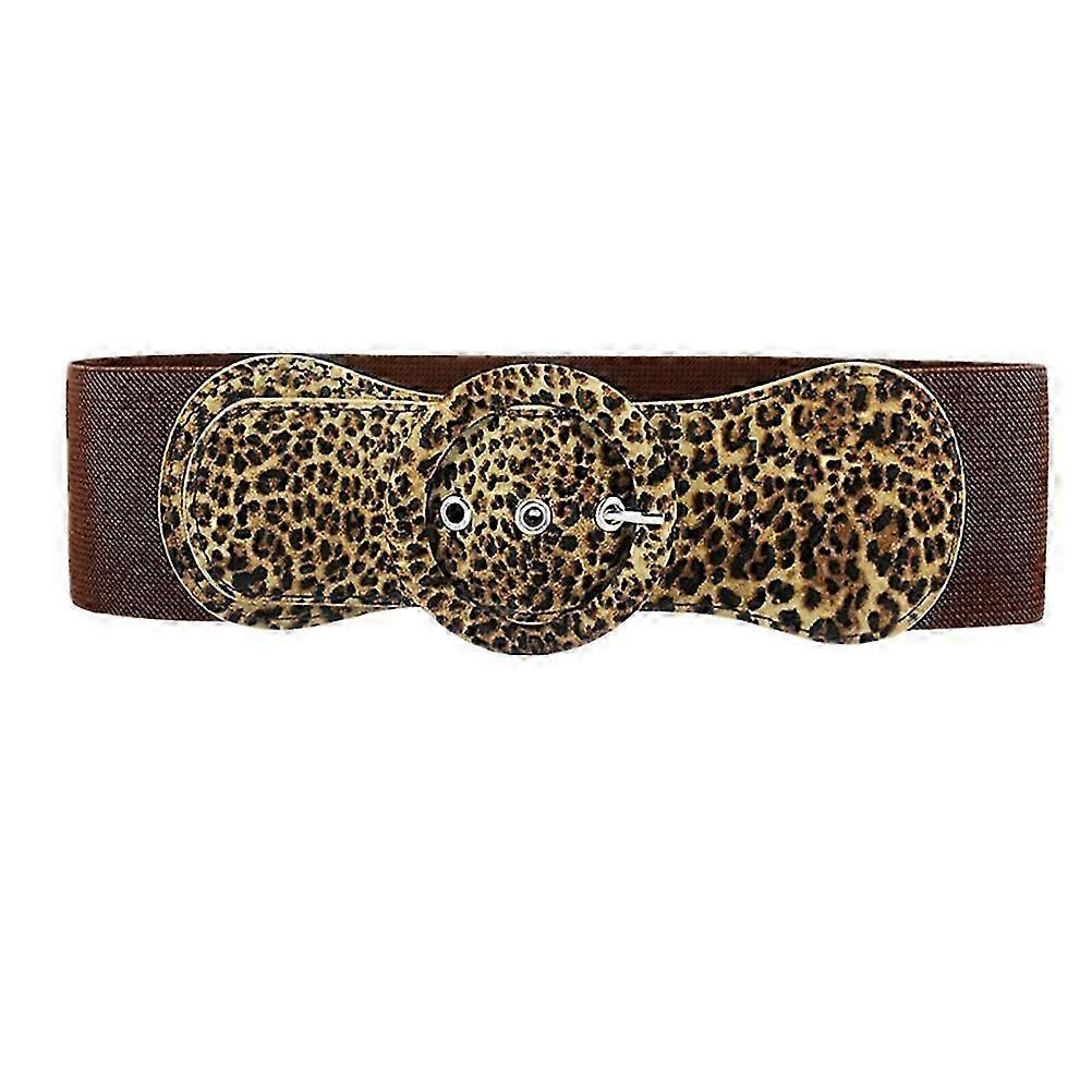 Elastic Wide Belt Imitation Leather Leopard Grain Belt Dress Stretch Thick Waist Belts for Women Ladies