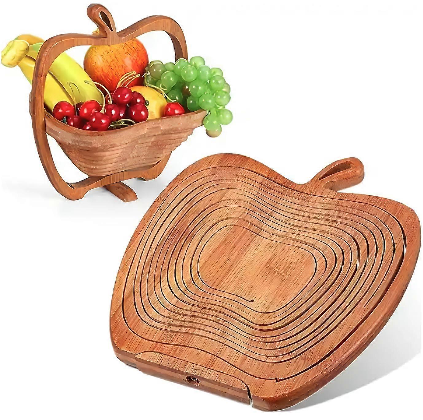 Elegant Folding Wooden Apple Shape Bamboo Fruit Basket for Home Decor, Gift, Kitchen Storage, Eco-Friendly Design