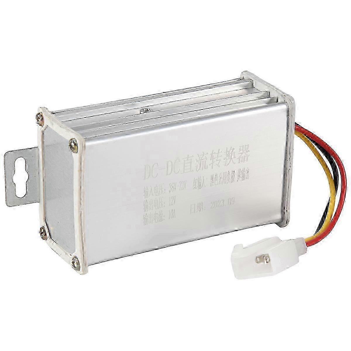 DC Transformer Adapter Converts DC 36V-72V input to DC 12V or 10A output. Features overcurrent protection, overvoltage protection, short circuit protection, built-in insurance. Suitable for two high-power electric motorcycle appliances, such as vacuum lamp, xenon lamp, etc. High performance and stability. Item condition: Input: 36V-72V Output: 12V or 10A, 120W Colour: silver Material: aluminum Package Contents: 1 x DC Transformer Only the above package content, other products are not included. Note: Light reflection and different displays may cause the color of the item in the picture a little different from the real thing. The measurement allowed error is 1-3cm.