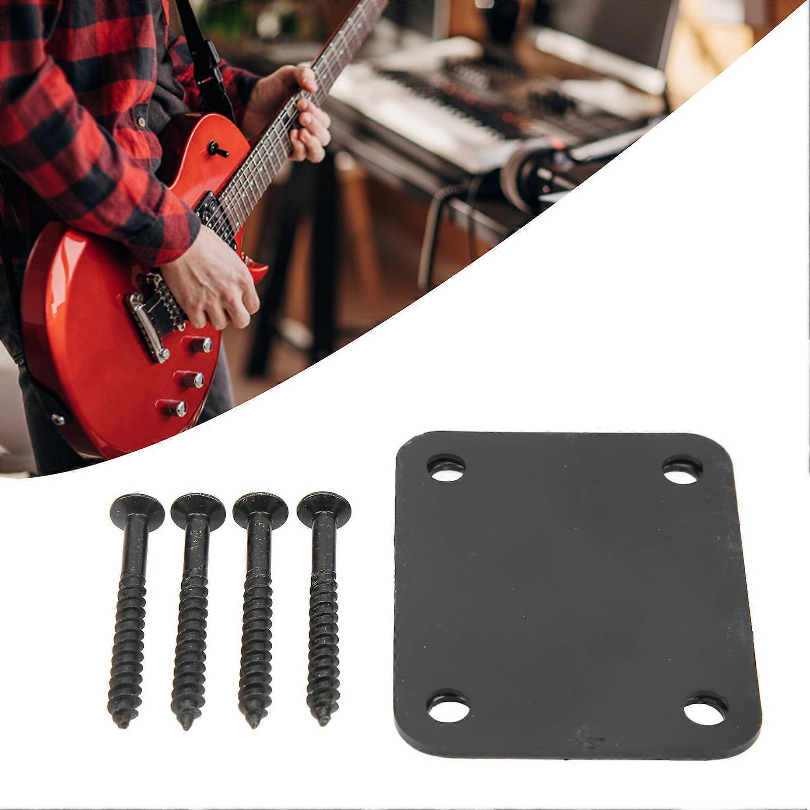 Electric Guitar Neck Plate Square Metal Back Mounting 4 Holes with Screws Bass Parts Black