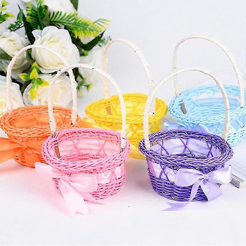 Simple Round Small Flower Basket Imitation Rattan Woven Handheld Flower Basket Handwoven
