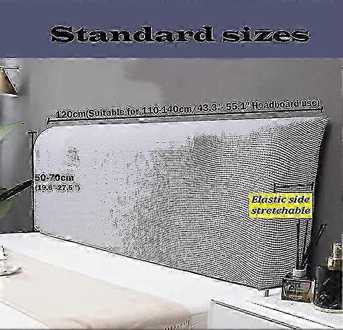 Single Bed Headboard Cover,Solid Color Elastic Protection Bed Headboard Cover Used For Bedroom Decoration Light Grey 120cm(43.3"-55.1")