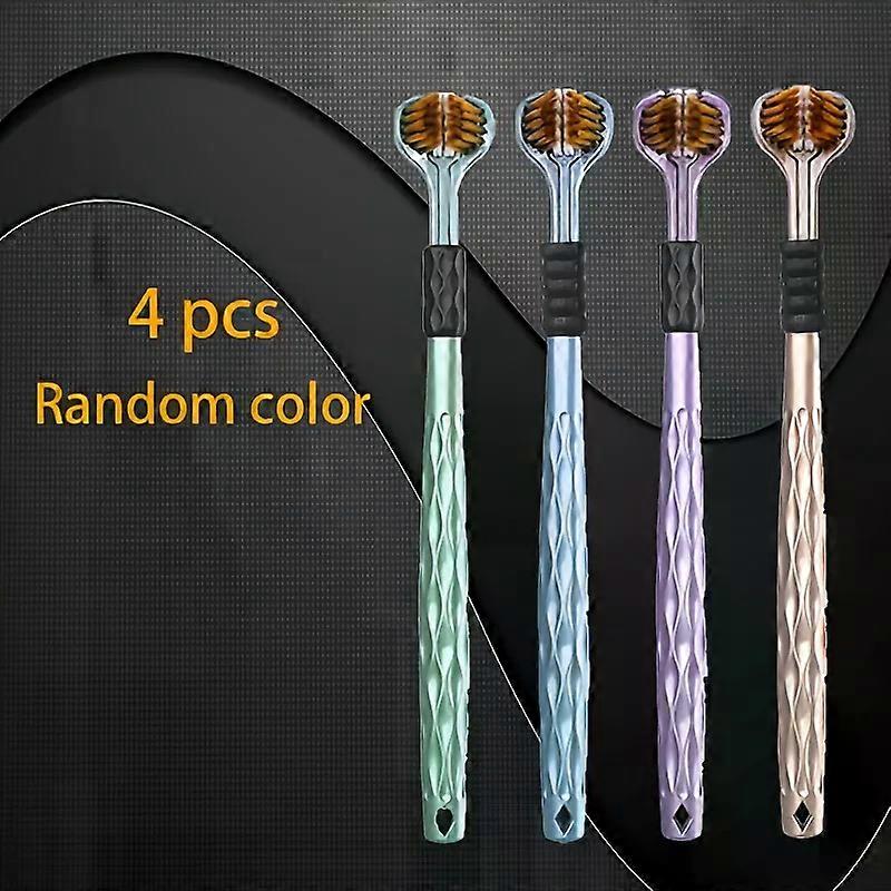 Ensemble de 4 brosses �� dents manuelles ergonomiques avec 3 t��tes de brosse, poils volcaniques dor��s et poign��e souple, adapt��es aux adultes