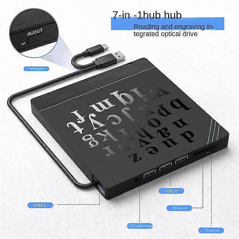 Features: 1. With External Power Supply Function, External Dvd Burner 2. Usb3.0 External Optical Drive 3. Integrated Reading And Burning, Fully Compatible, Usb3.0+ Type-C, External Optical Drive, Multi-Purpose In One Machine, Plug And Play, High-Speed Burning, Easy Disc Reading 4. Ultra-Thin Design, Thickness 18mm, Easy To Carry, Can Be Used Not Only Indoors, But Also Outdoors. 5. With Non-Slip Foot Pads, The Non-Slip Shock-Absorbing Rubber Attached To The Bottom Of The Product Can Prevent Slipping, Shock Absorption, And Use More Secure Anti-Slip Shock-Absorbing Rubber To Minimize Buffer Underrun And Possible Occurrences During External Dvd Operation. Kind Of Mistake. Description: Installation Method: External Cd Loading Method: Tray Type Writing Speed: MAX CD: 24X DVD: 8X Read Disc Format: CD/DVD/VCD Recording Format: DVD-RW Type: DVD Burner Reading Speed: CD: 24X DVD: 8X Supported Disc Standard: DVD-RW Note: Different Batches May Have Differences In Product Appearance, Color, And Printed Characters, Which Not Affect The Use size: About 142 x 140 x 18mm Material: ABS colour: black Package Contents: 1 x Recorder (With Power Supply Cord) 1 x English Manual Only the above package content, other products are not included. Note: Light reflection and different displays may cause the color of the item in the picture a little different from the real thing. The measurement allowed error is +/- 1-3cm.