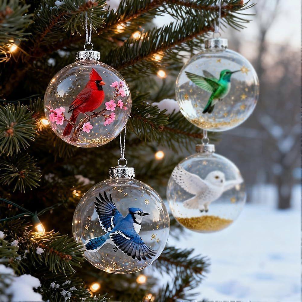 Birds Crystal Glass Ornament Set, Cardinal Bird Christmas Tree Ornaments for Xmas Tree Memorial Gifts, for Room Decor, Clear Plastic Christmas Balls,