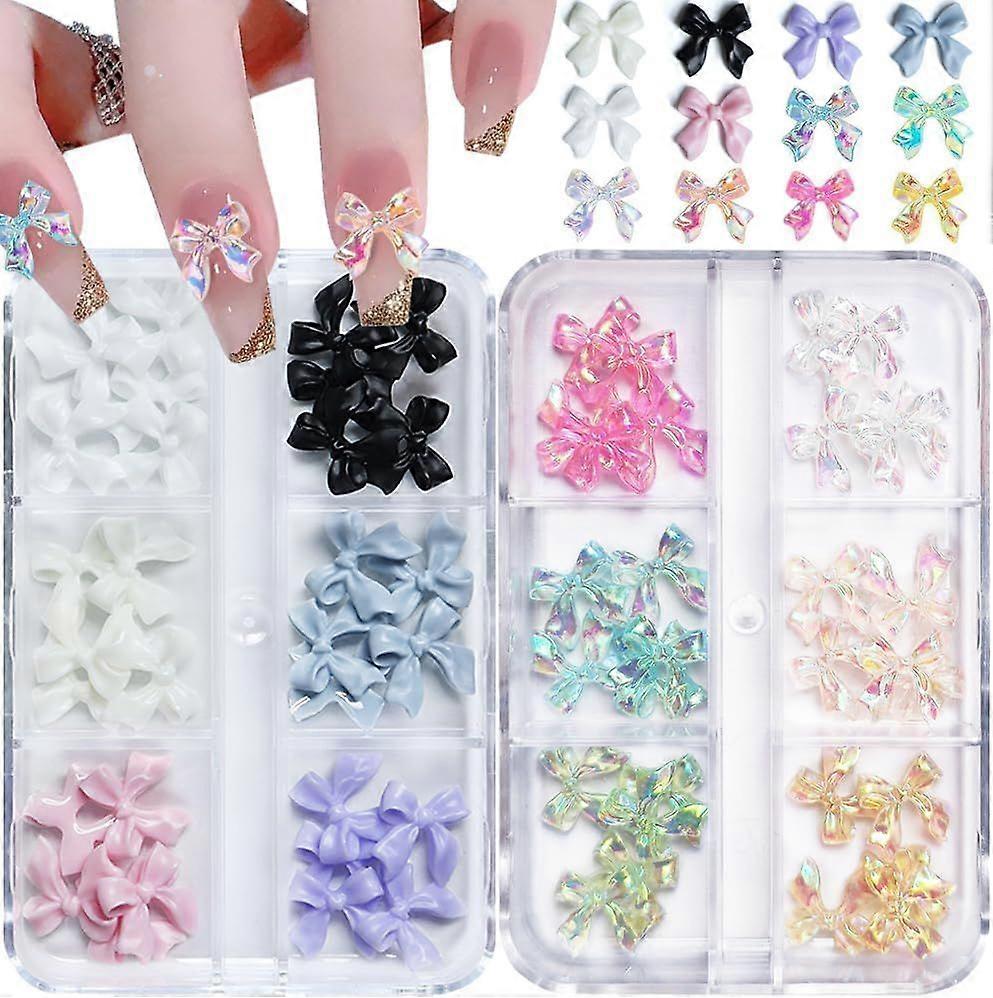 3D Colorful Nail Charms, 2 Boxes of 24 Pieces Each, Acrylic Resin, Bow Shape