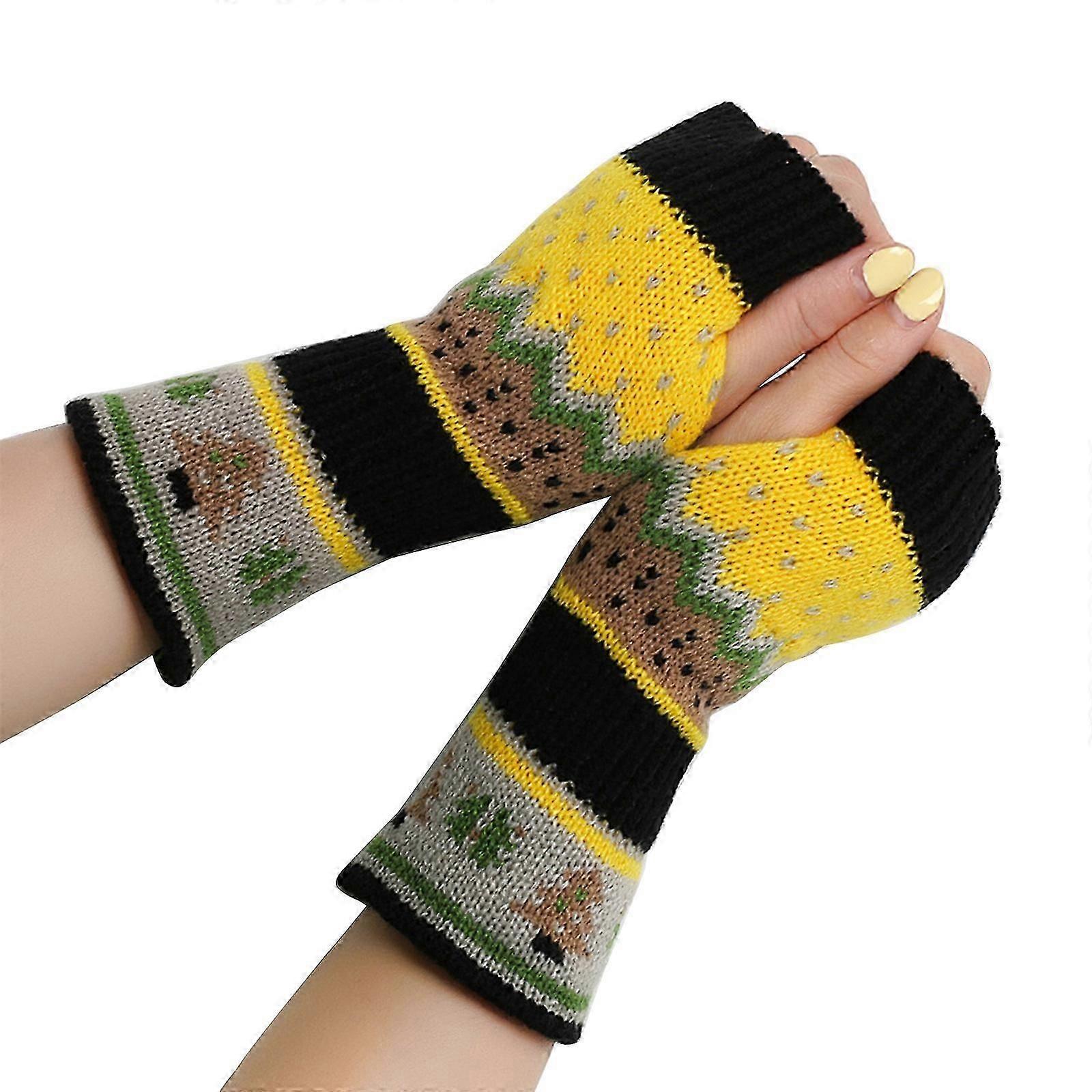 Colorful Christmas Thick Half Gloves for Female Handmade Crochet Gloves Winter Arm Gloves Girls Arm Sleeves Hand Warmer orange