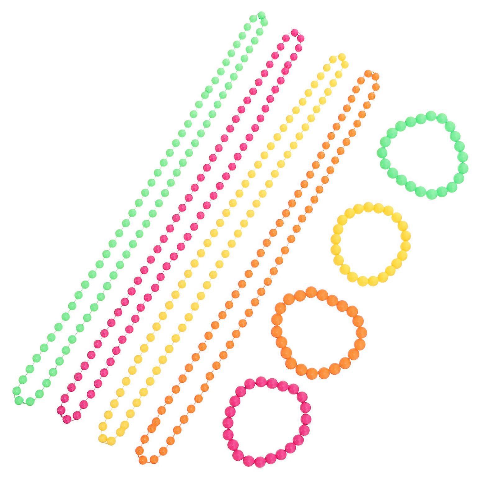 Colorful Beaded Jewelry Set for Decor Lightweight Plastic Multi Bracelet Necklace Kit 1 Set