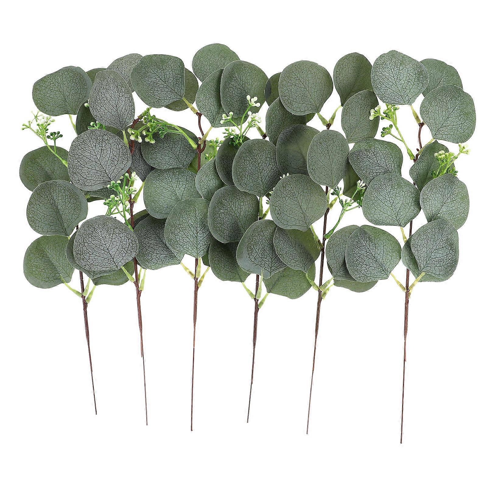 Faux Eucalyptus Leaves Fake Greenery for Vase Relaxation Atmosphere Indoor Users Weddings Parties 6Pcs