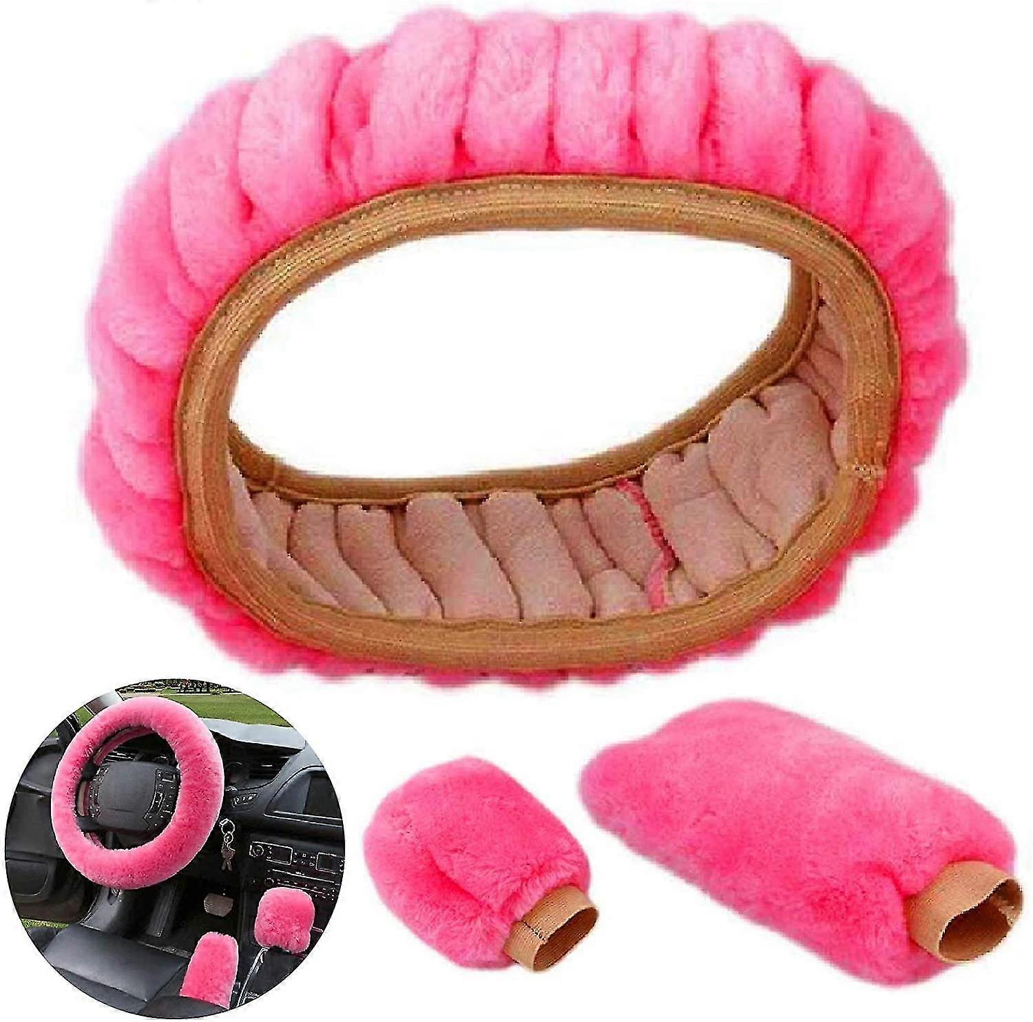Fluffy Steering Wheel Cover Fur Steering Wheel Covers 38cm Pink Winter Warm