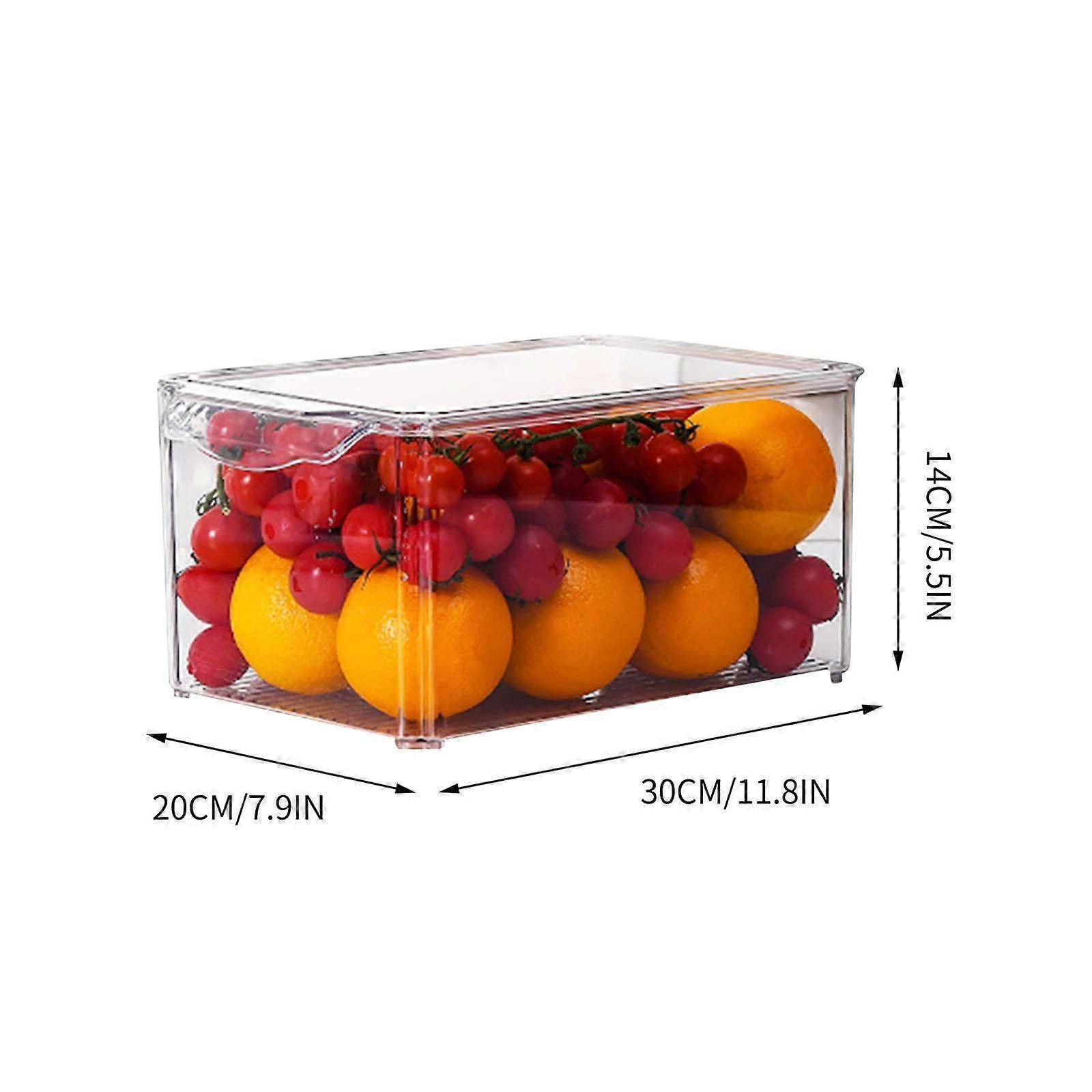 Fnyoxu Kitchen Transparent Refrigerator Storage Box,Drawer Style Fresh-keeping Box,Rectangular Covered Version,Household Plastic Storage Basket