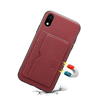 För iphone xr denior V3 lyxbil kohud läder skyddsfodral med hållare & kortplats (mörkröd)