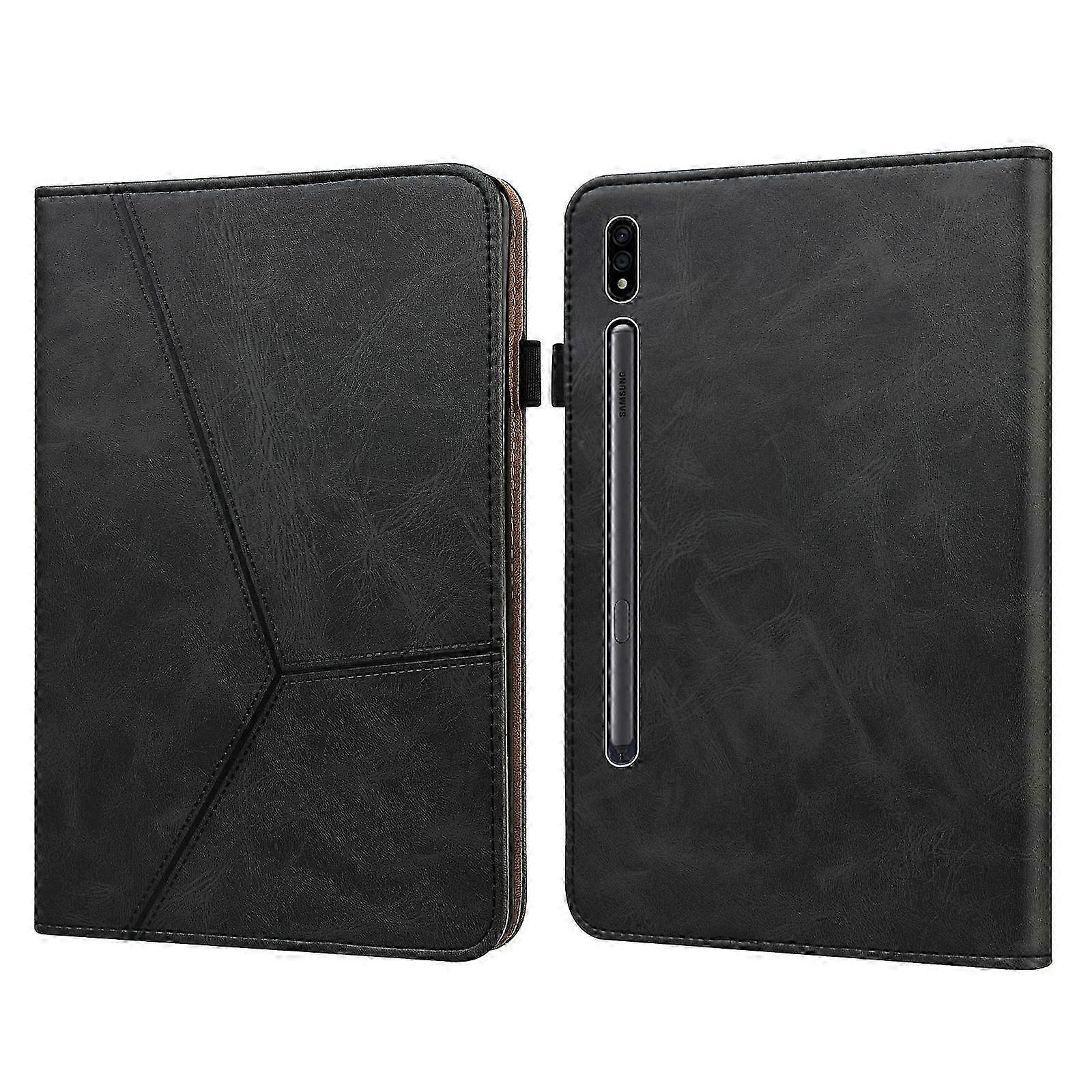 For Samsung Galaxy Tab S7+ T970 / S7 FE T730 Solid Color Embossed Striped Leather Tablet Case