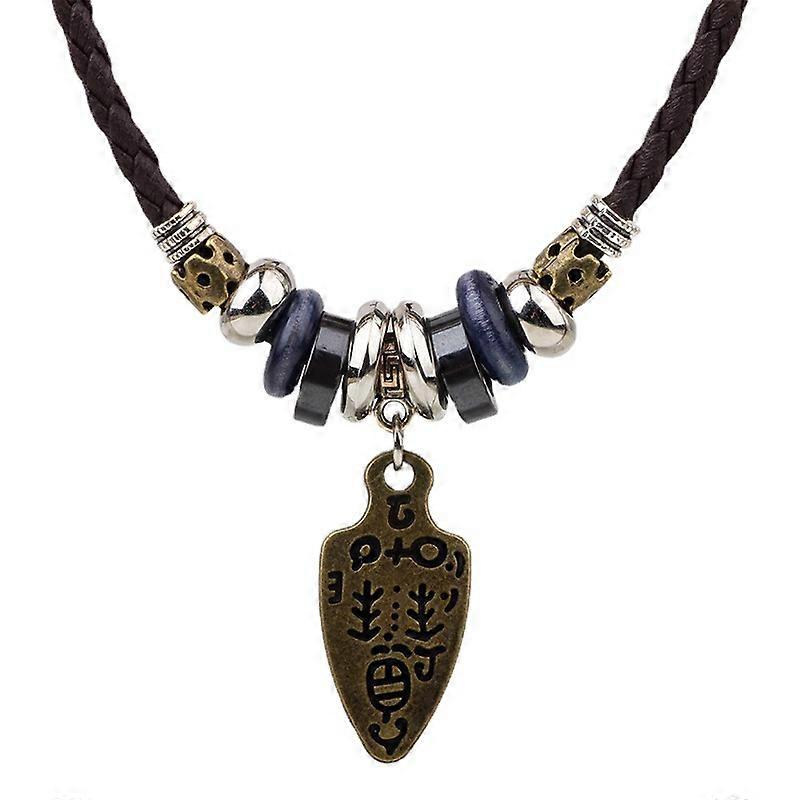 Ancient Sword Pendant Necklace, Genuine Leather Braided Cord Fashion Jewelry