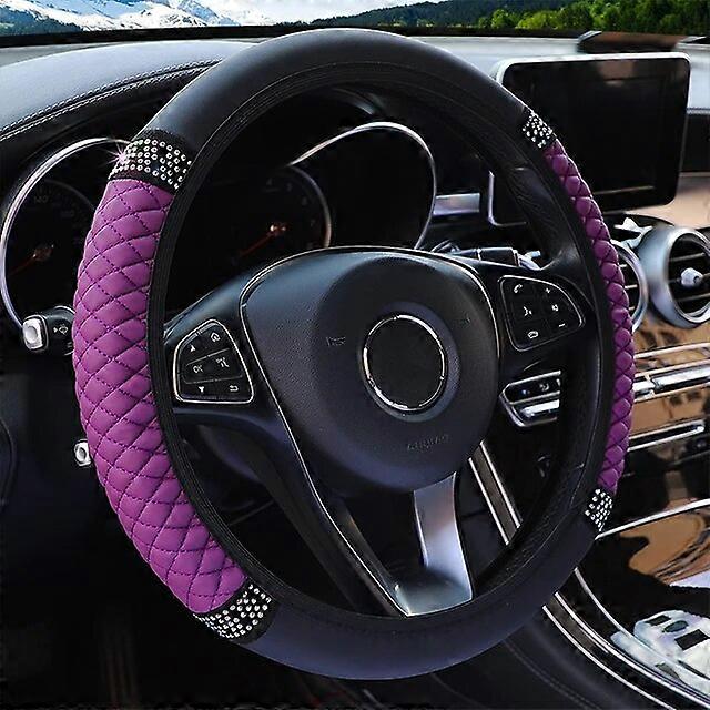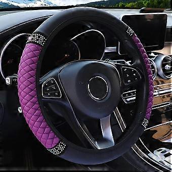 Four Seasons Universal Car Steering Wheel Cover 37-38cm Leather Embroidered Color Diamond-Studded Elastic Steering Wheel Cover