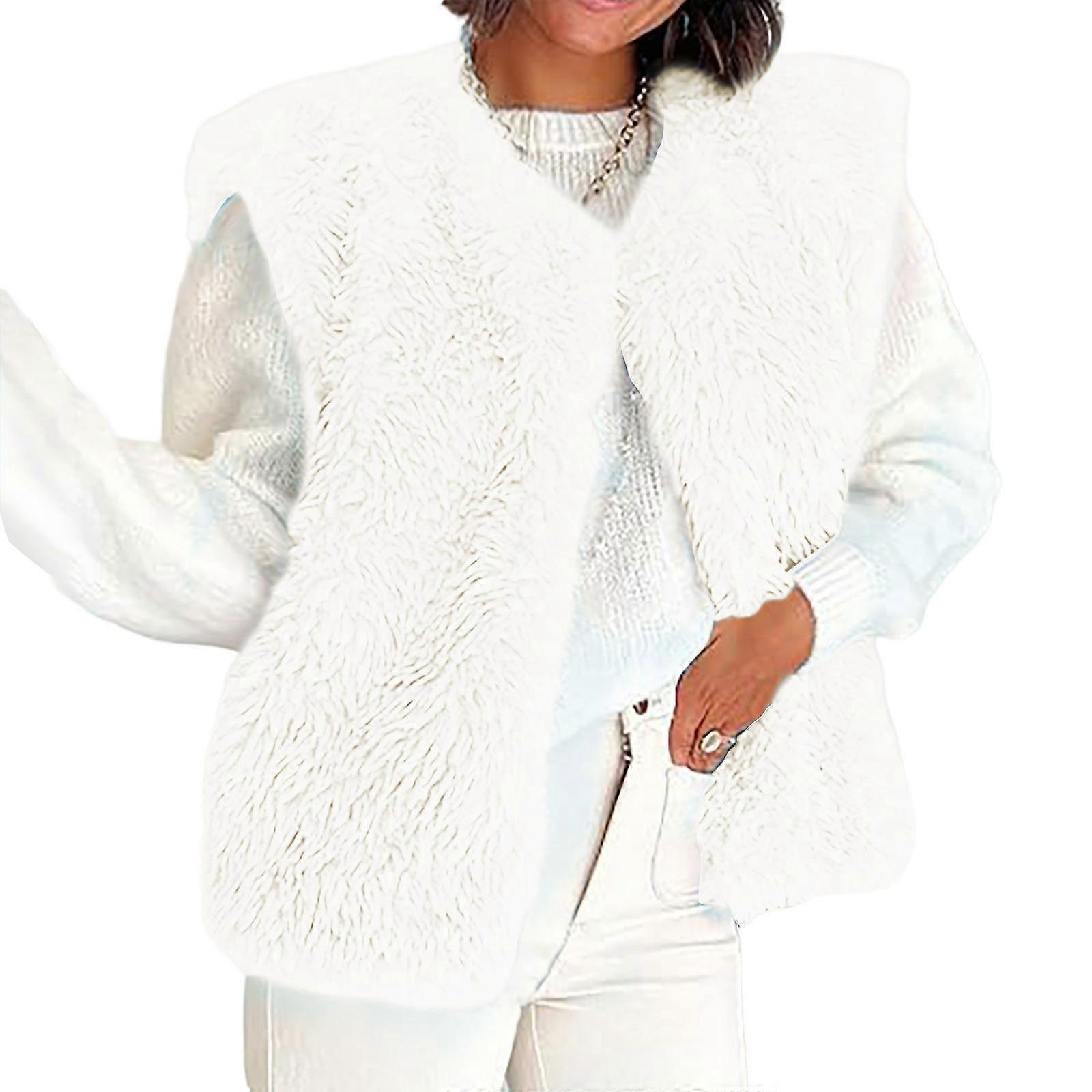 Fuzzy Sherpas Fleece Vest Jacket Lightweight Cozy Sleeveless Cardigan Waistcoat Outerwear Fall/Winter Outfits for Womens White XL
