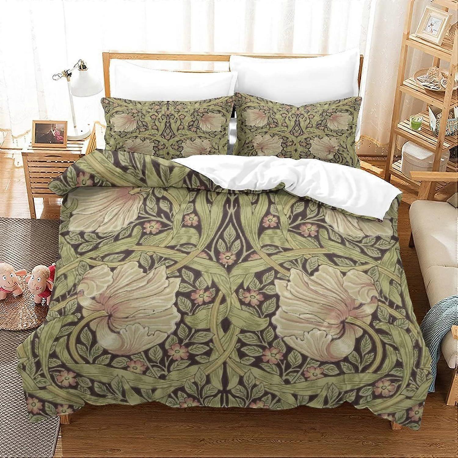 G140 Floral Pattern Duvet Cover with Pillowcases 3D Printed Luxury Soft Bedding Easy Care Set with Zipper Floral Watercolour Morris Male Female Adult