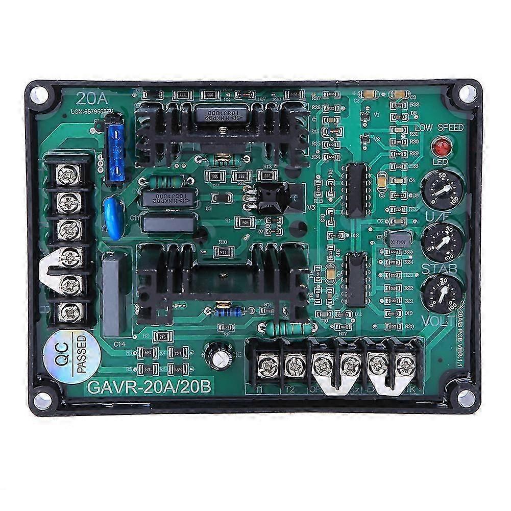 Features: _x000D_ The Automatic Voltage Regulator realizes the automatic adjustment of the generator output voltage by controlling the excitation current of the generator. _x000D_ High voltage stability, suitable for 220/380/400VAC brushless generator. _x000D_ Low frequency protection and slow voltage building function. _x000D_ Built-in high breaking capacity fuse for better protection. _x000D_ The voltage regulator uses flame retardant and high temperature resistant components to guarantee safety use. _x000D_ _x000D_ _x000D_ Specification: _x000D_ Model: GAVR-20B _x000D_ Voltage regulation rate: