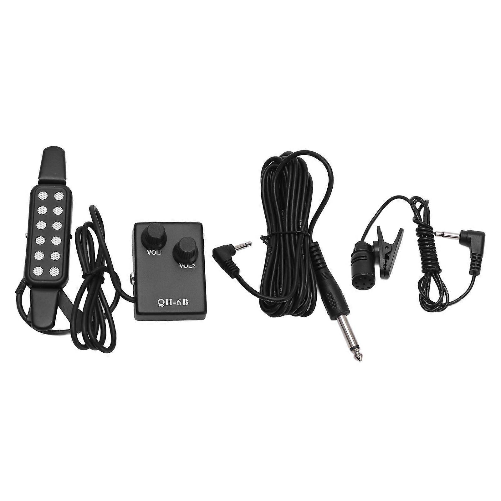 Guitar Pickup with 12 Sound Holes, Volume Control & Mic, Black