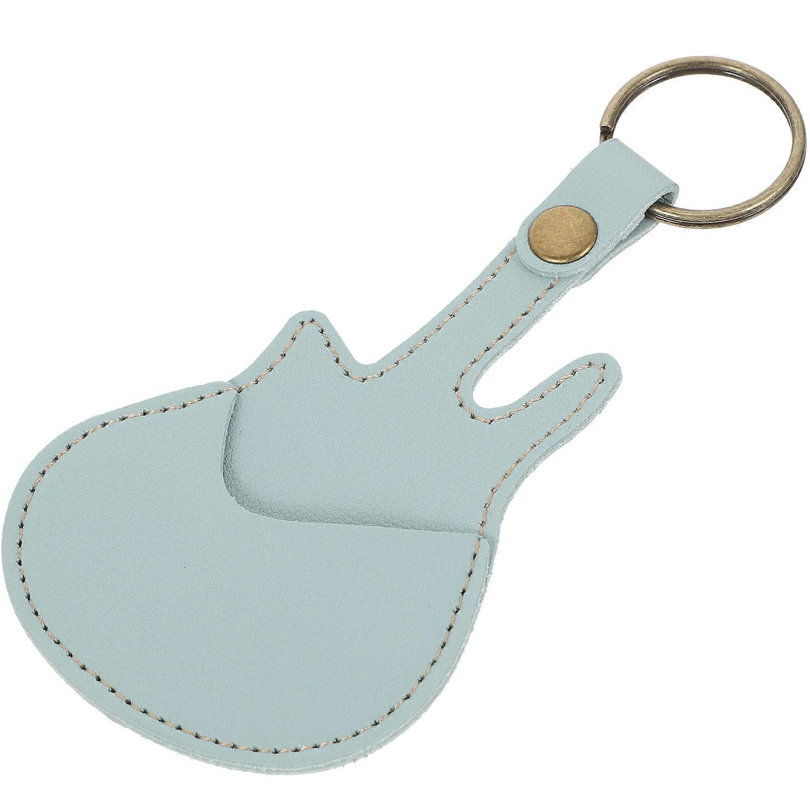 Guitar Pick Holder Keychain Sky-Blue Pu Leather Guitar-shaped Storage Case 1Pcs