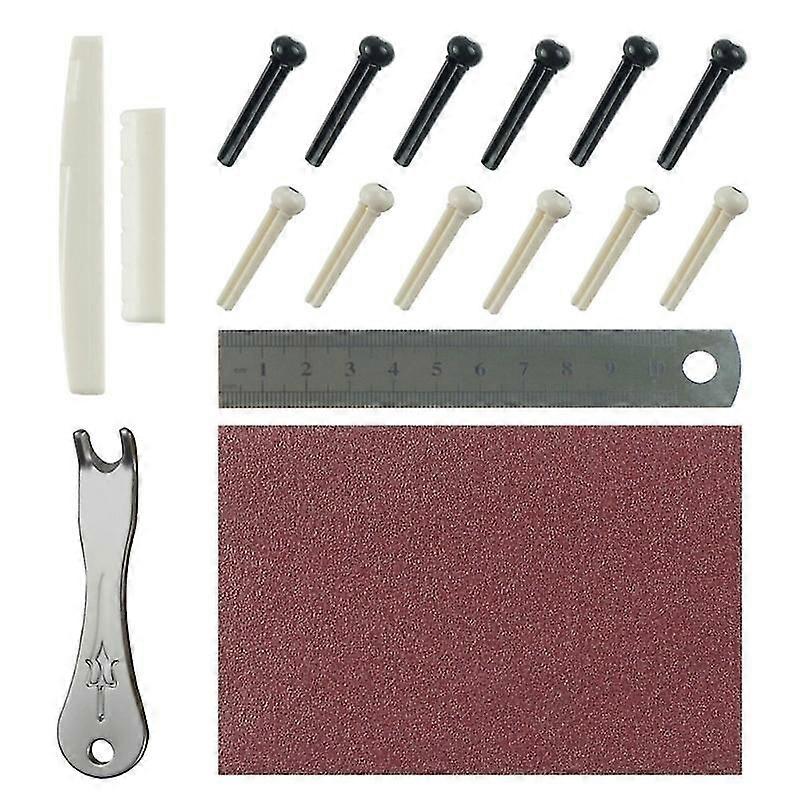 Description Features: Elevating your acoustic guitar with this set of 17 pieces bridge pins, featuring durable ABS plastic and quality stainless steels tools. Made of stable ABS plastic, these lightweight and portable bridge pins are perfect for replacing and adjusting strings on your guitar. Suitable for all guitar enthusiasts, including beginners and professionals, this set is designed to improve the playing experience and meet the needs of guitarists seeking improved tone and ease of use. Whether youre practicing at home, performing live, or recording in the studio, this versatile set of guitar accessories is perfect for various occasions and will enhances your guitar playing. Take your guitar to the next level with this comprehensive set, perfect for all acoustic guitar lovers. Upgrade your instrument and enjoy the benefits of improved sound quality and effortless string replacement. Specifications: Material: Stainless Steel, Plastic, Sandpaper Color: As The Picture Shows Package Weight: approx.40g Size: As The Picture Shows Note: Please allow 1-2cm error due to manual measurement. Please make sure you do not mind before you bid. Due to the difference between different monitors, the picture may not reflect the actual color of the item. Thanks! Package includes: Set of 17Pcs Guitar Bridge Pins Puller Pulling Remover Extractor Tools Kits