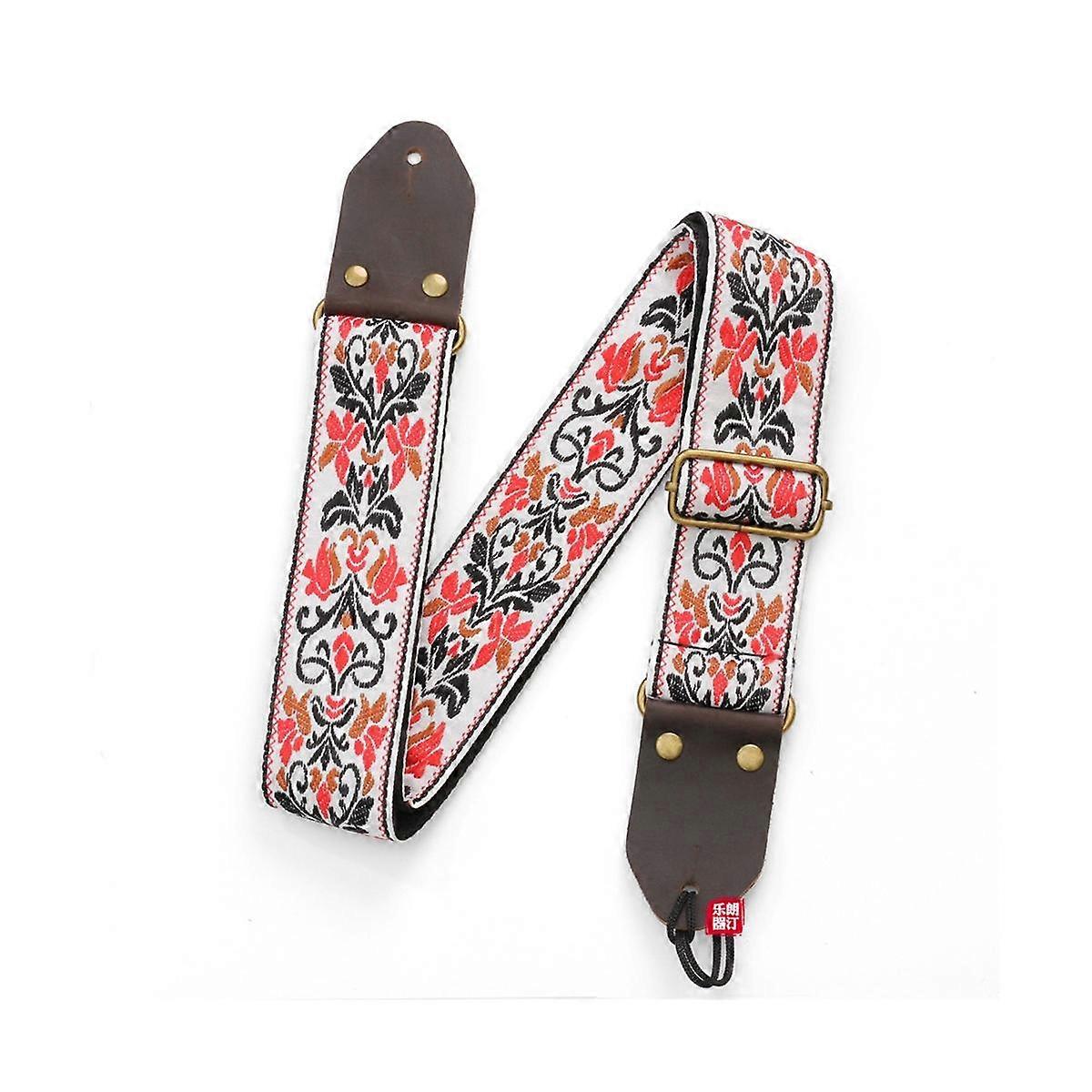 Guitar Ukulele Strap Embroidered Guitar Strap Leather Head Bass Shoulder Strap Electric Guitar Acce
