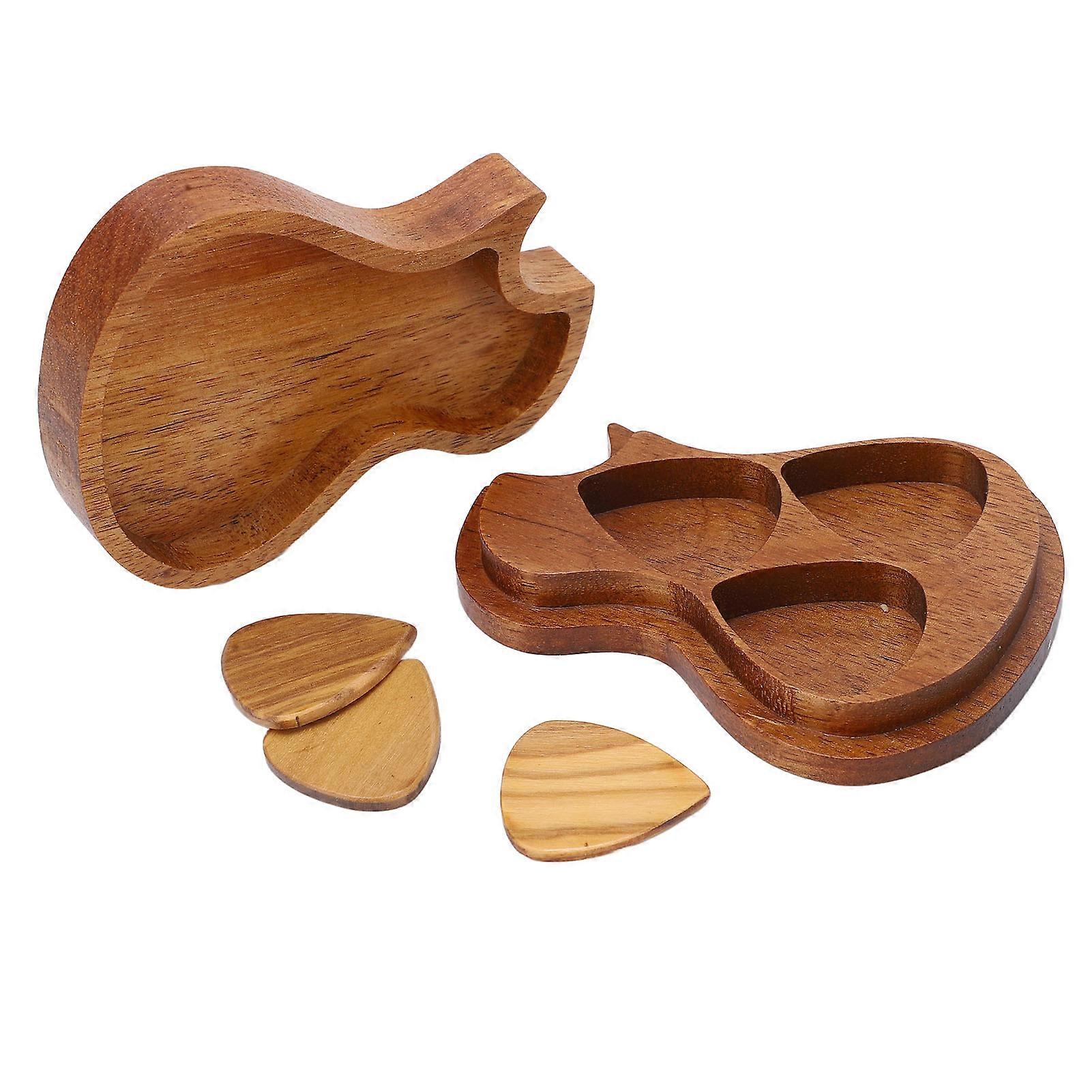 Guitar Pick Holder Set Olive Wood Wear Resistant Natural Decorative Portable Guitar Pick Case