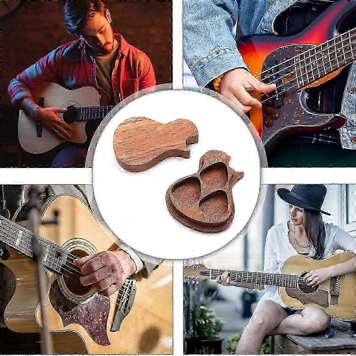 Guitar Pick Box Holder Wooden Collector Engraved Guitar Pick Box Classical Triangle Guitar Picks for Present Music Instrument Guitar Bass miao8