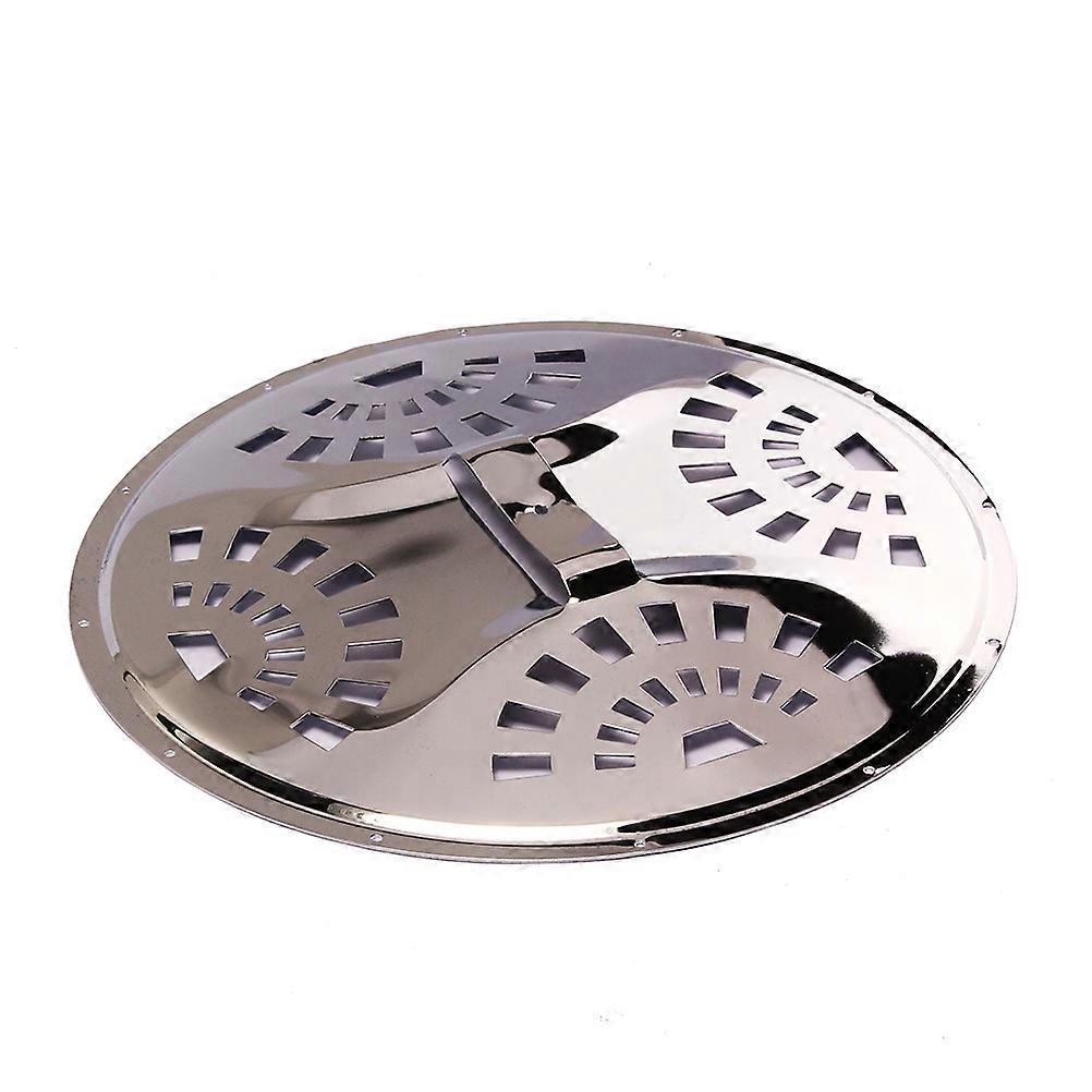 Description This item is authentic cover plate, which fits the standard Duolian and Triolian wood or metal body guitars that use a 9 1/2" resonator cone. Made of brass and richly nickel-plated. Features - Color: silver.- Material: metal.- Size: 28.1 * 28.1 * 0.15m.- Classic perforated pattern.- A great replacment for guitar.- Made of iron material,corrosion resistance.Packing list; 1 * Guitar Cover Plate for Resonator Dobro Resophonic Guitar